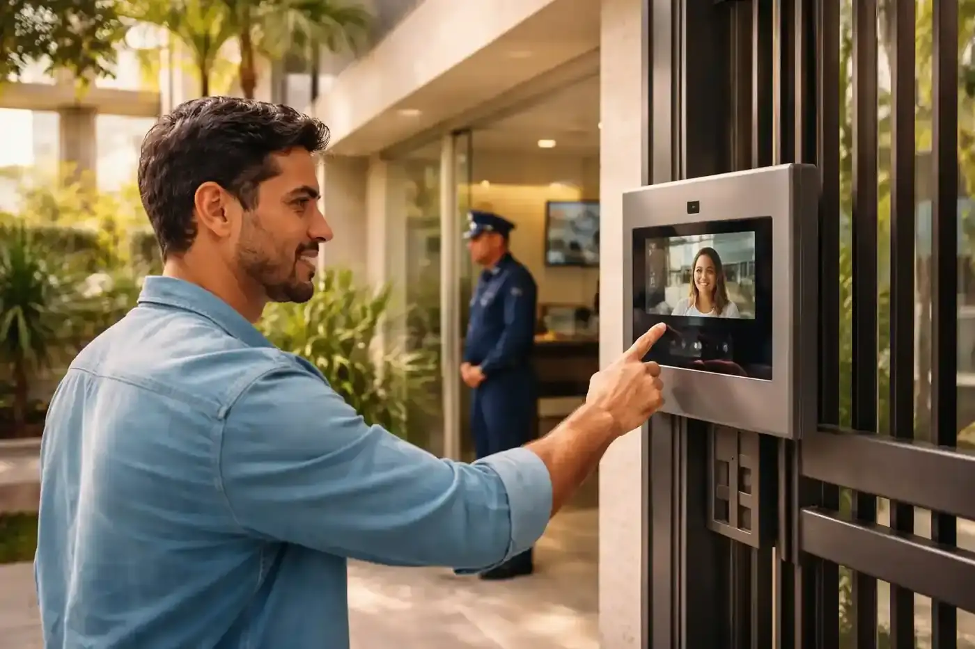 A comunicação pode operar em conjunto com controle de acesso, portões e monitoramento para apoiar decisões com mais contexto.